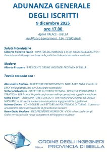 IN DATA 09/12/2025 PRESSO HOTEL AGORA' BIELLA IN OCCASIONE DELLA ADUNANZA GENERALE convocata alle ore 14.00 SI TERRA' IL SEMINARIO "IL RUOLO DELL'ATOMO NELLA NEUTRALITA' CLIMATICA"